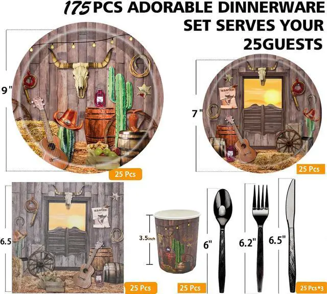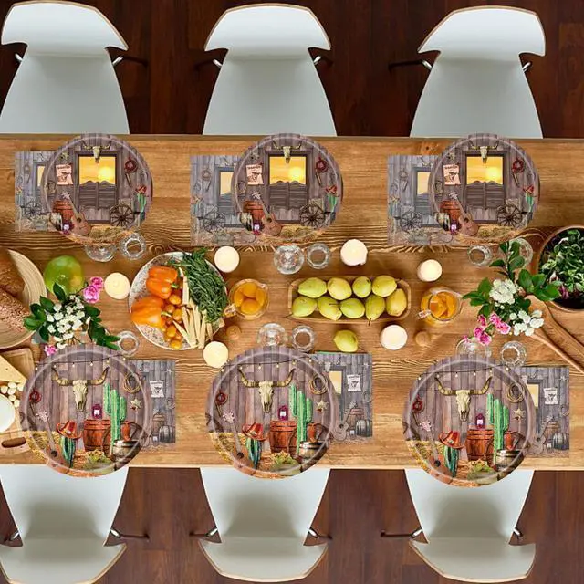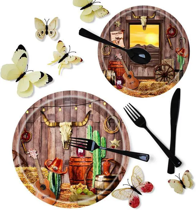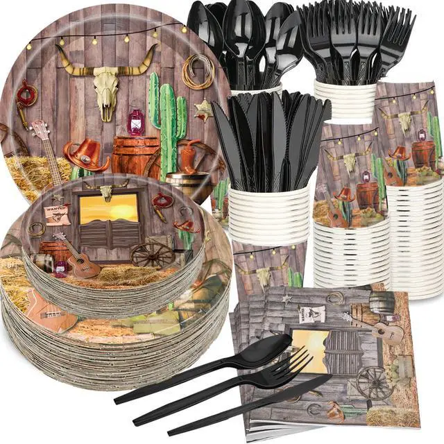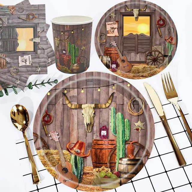 QUICK AND EASY CLEAN UP:These cowboy themed party decorations can save clean up,when you're done with the tableware,just throw away the food scraps along with the tableware,save your time,just spend motime enjoying your partyre !