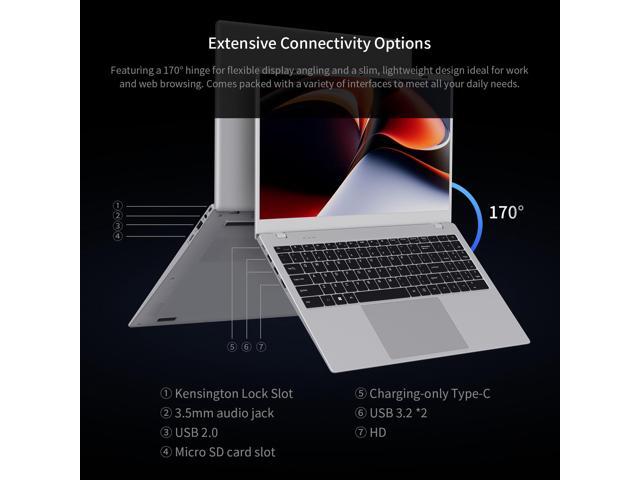 - Multiple Ports: With 2 x USB3.2, 1 x USB2.0, Standard Size HD, Headphone Jack, Micro SD, you can easily connect all your peripherals and devices to our laptop.