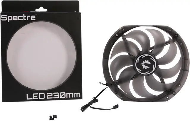 • neweggAggressive Looks Both On and OffManufactured from a high-grade tinted polycarbonate resin, Spectre LED Fans give a sleek dark look when off, while still emitting bright lights when the LEDs are turned on. No matter if you keep your lights on or off, Spectre keeps your system looking great.