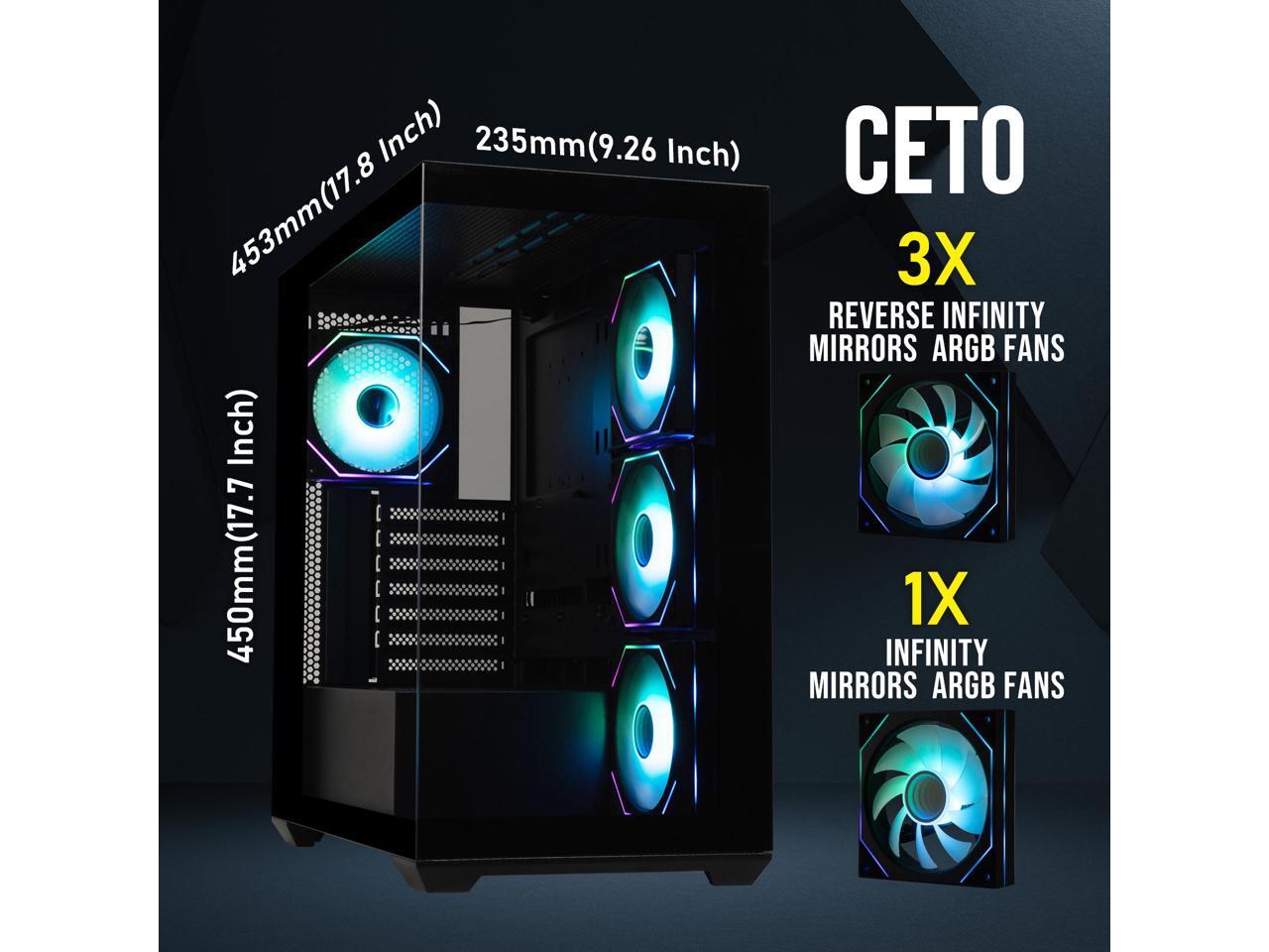 BitFenix CETO High AirFlow PC Gaming Case Black-Panoramic Tempered GlassReverse Connection Motherboard Compatible4xInfinity Mirroring ARGB Fans(3x Reverse) Pre-installed.