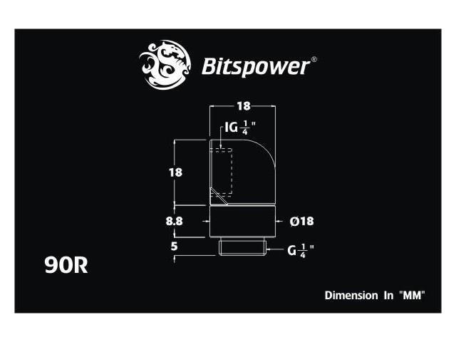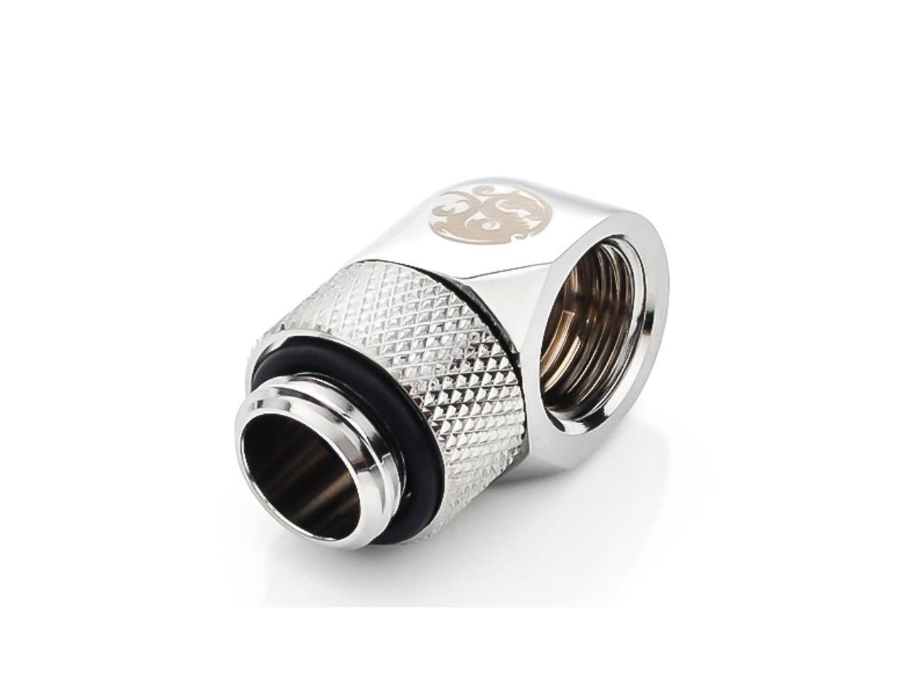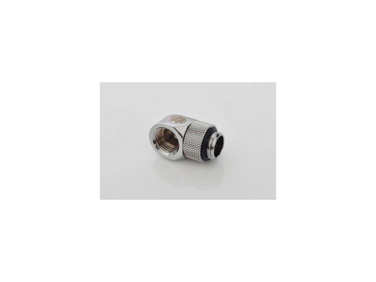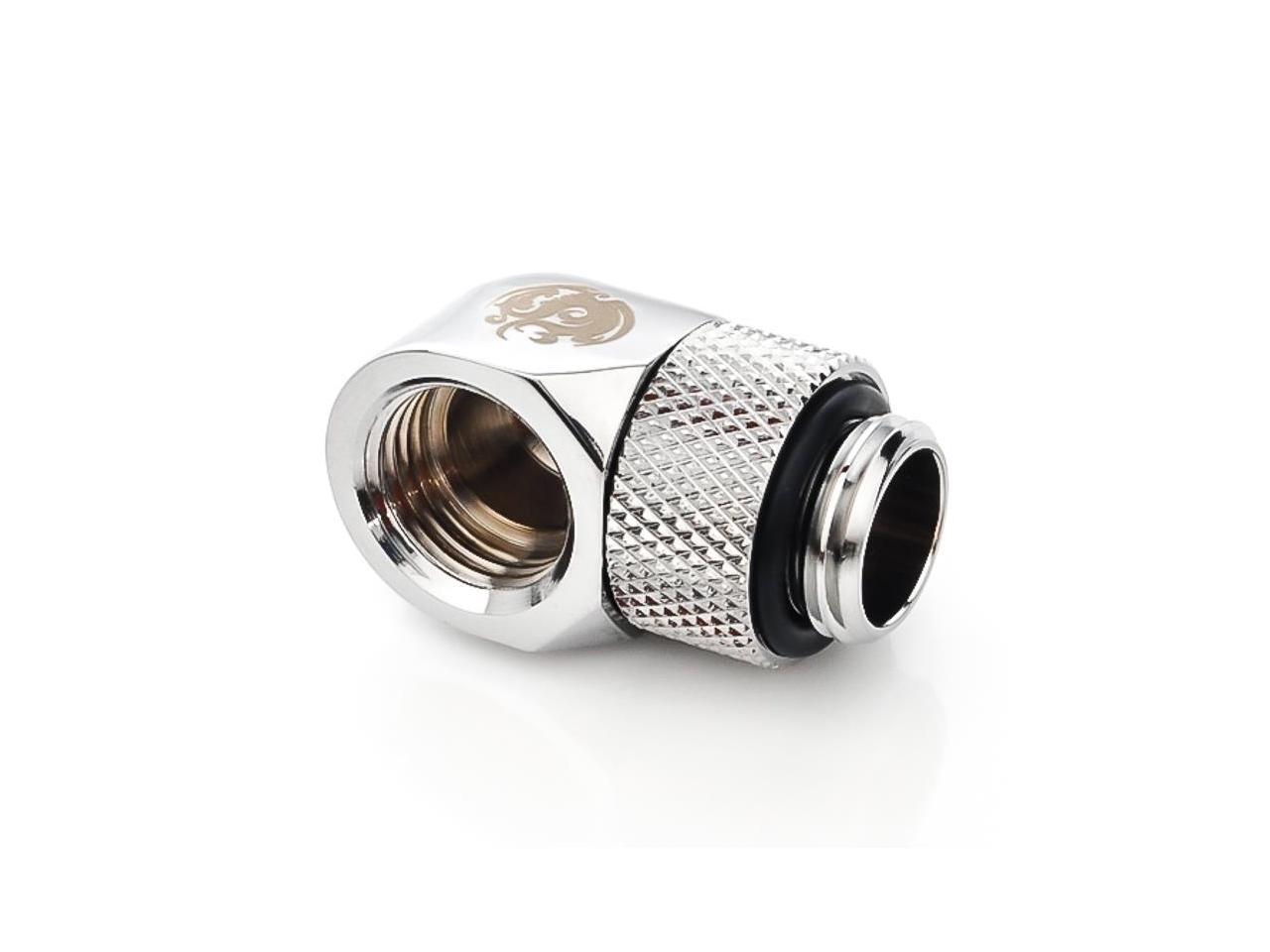 Bitspower G1/4" Male to Female Extender Fitting, 90? Rotary, Silver Shining