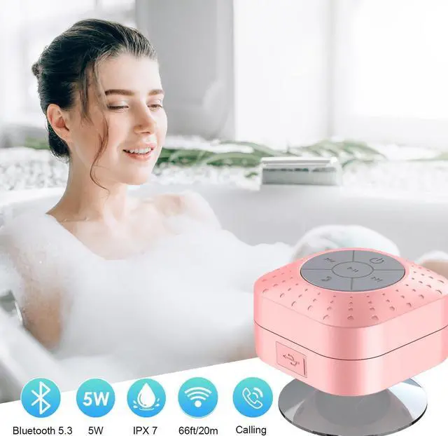 Shower Speakers, Suction Cup Mic for Bathroom, Portable Small Wireless Speaker for Outdoor Party Beach, Room, Car, Trip, Ideal Gift for Men Women (Pink)