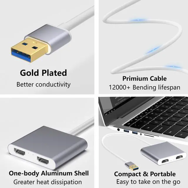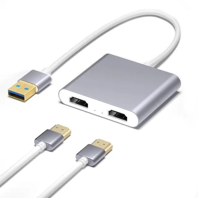 PerformanceUSB3.0 to dual HDMI hub converter (1 USB-A male to 2x HDMI female connector) offers 2 1080p@60Hz videos,HDMI dual channel audio, and 5 inch (13 cm) cable length