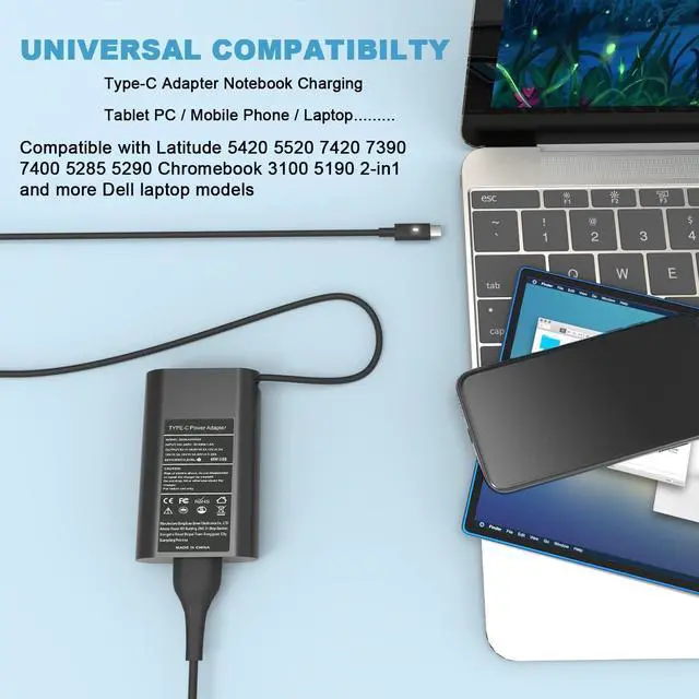 Compatible with XPS 13,Latitude 5420 5520 7420 5440 5540 7440 Chromebook 3100 3400 5190 Type C Power Supply Cord