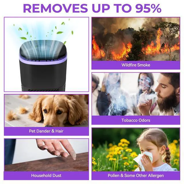 Air Purifier for Home & Bedroom, Removes 99.997 % of Smoke, Pollen, Pet Hair & Odors