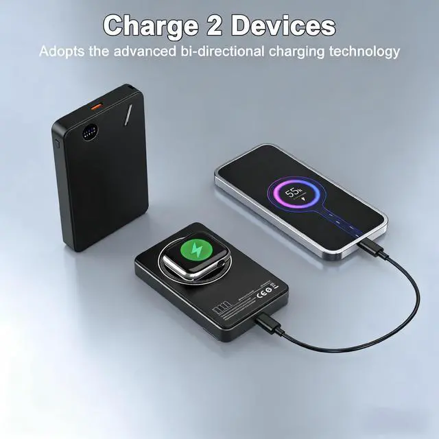The magnetic power bank supports charging while in use, saving you time and enhancing your user experience.