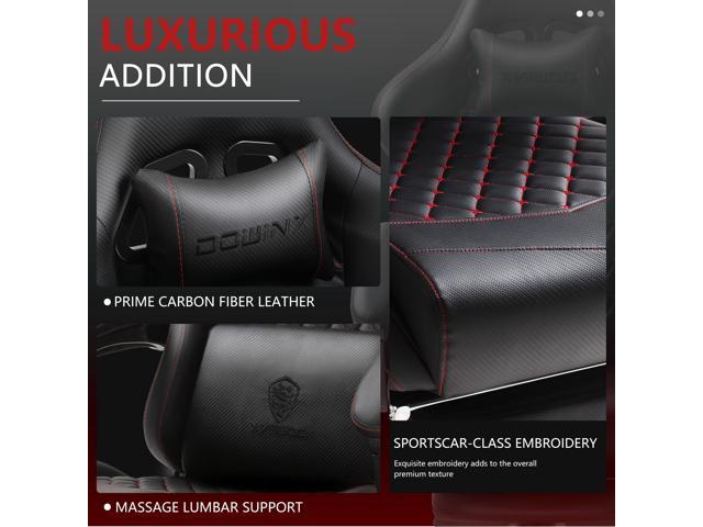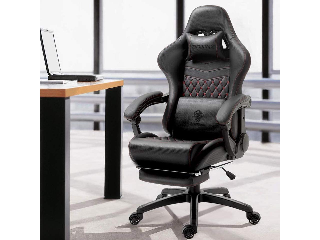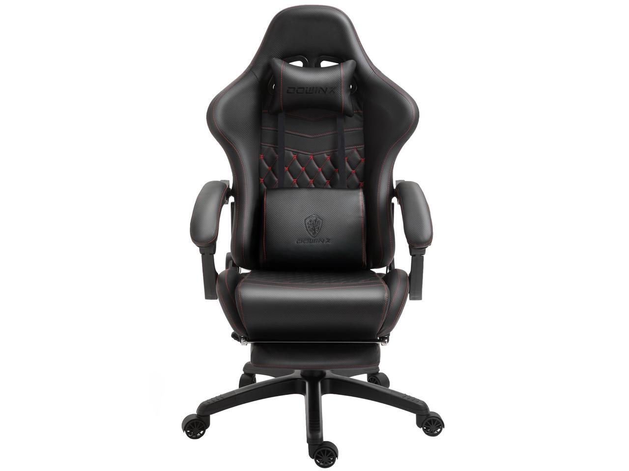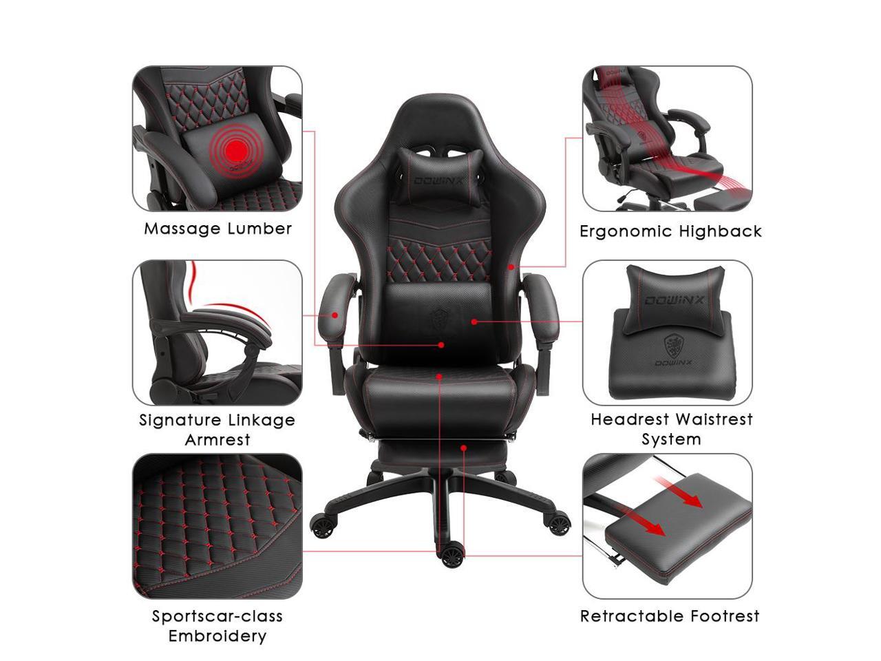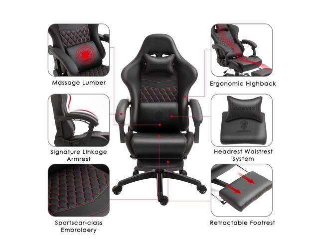 Dowinx High Back Gaming Chair with Massage Lumbar Support, Game Chair with Adjustable Headrest, Ergonomic Office Chair, Racing Chair with Footrest, PU Leather, Black