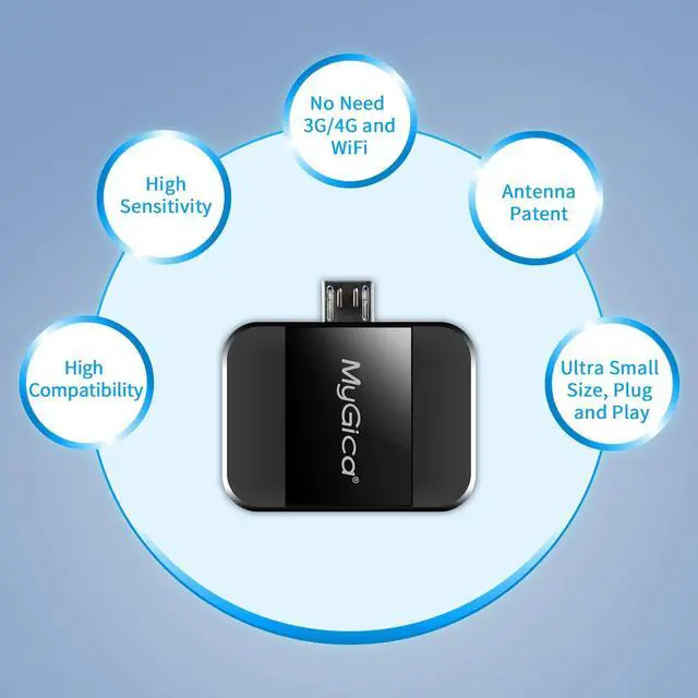 If you think TV can’t be truly free, think again. That’s the beauty of this MyGica digital TV tuner/receiver: Because it serves as a simple antenna to pick up locally broadcasted television stations directly, it requires absolutely nothing else besides for a but of power provided by your mobile device. It DOES NOT use any of your data allowance or airtime. In fact, it works perfectly even if your device has no Internet connection. This means you can get TV even when hiking or camping beyond the reach of cell towers.