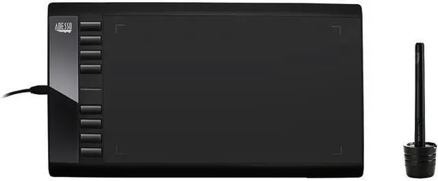 Adesso 10.00" x 6.00" USB Widescreen Slim Garphic Tablet, with 8 programmable hot keys, 2048 leveles of pressure sensitivity, 5080 Line Per Inch resolution, for Window 7 above & Mac OSx10.6 above