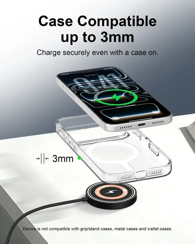 Charging Distance: 5mm (Mag-Safe case-Friendly)