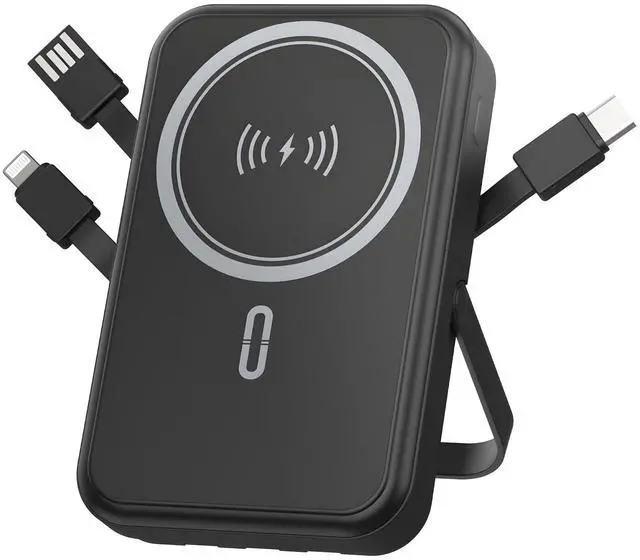 Large capacity The 10000mah super large capacity charger bank can provide lasting and stable battery power for electronic devices, which is very suitable for other daily and outdoor activities. Wireless Charging designed specifically for iPhone 16 / iPhone 16 Plus / iPhone 16 Pro / iPhone 16 Pro Max, iPhone 15 / iPhone 15 Plus / iPhone 15 Pro / iPhone 15 Pro Max, iPhone 14/ iPhone 14 Pro/iPhone 14 Pro Max/iPhone 14 Plus, iPhone 13/ iPhone 13 Pro/iPhone 13 Pro Max/iPhone 13 Mini, iPhone 12/ iPhone 12 Pro/iPhone 12 Pro Max/iPhone 12 Mini. Built-in 3 Cables (1* Lightning output, 1*Type-C output, 1*USB-A input). Powerful Safety Protection This solar power bank has good build quality and safety protection system. Short circuit, overtemperature, input overvoltage and output overcurrent protection let you use it at ease. Three Devices Charging Simultaneously This magnetic wireless power bank is designed with 3 outputs: 1*Type-C charging outputs, 1*USB-A output, 1* Magnetic wireless output. It supports 3 devices charging max simultaneously, no more cluttered charging adapters or cables on your desk now. Wireless Charging For iPhone 16/15/14/13/12 Series, Type-C & USB-A For all phone/Tablet/earbuds and more. Strong Magnetic and Case Friendly Magnetic portable charger adopts the latest magnetic suction technology, charging immediately after snap. Support 5W, 7.5W, 10W and 15W Max wireless charging. To better enjoy this wireless power bank, we recommend charging with a Mag-Safe phone case or without cases to get enough suction for better grip. Note: Only for magnetic cases, does not for non-magnetic cases. Built-in foldable kickstand The portable power bank for iPhone with foldable kickstand, keeps your Phone on it vertical or horizontal for a comfortable viewing angle. Built-in 3 Cables This magnetic wireless Power Bank built-in 3 cables included 1*Type-C output, 1* Lightning output, 1*USB-A input, compatible with iPhone, Samsung, Android and tablets etc smart devices, directly charging in anywhere. Also built in USB-A input cable for charging power bank itself, you don't need take any cords when going out and travel. Compact and Portable The wireless power bank is lightweight and easy to carry, only 190g, it can be put in your pocket to carry to anywhere. It doesn't give too much bulk on the phone that you can put the phone in your pocket while charging with this magnetic power bank. Specifications: Capacity: 10000mAh Battery type: Li-Polymer Battery Type-C input: 5V/3A, 9V/2A, 12V/1.5A Type-C output: 5V/3A, 9V/2A, 12V/1.5A USB output: 5V/3A, 4.5V/5A, 5V/4.5A, 9V/2A, 12V/1.5A(MAX: 22.5W) Magnetic wireless output: 15W Material: ABS+PC Product size: 112*69*22mm Product weight: 190g Product color: Black/White