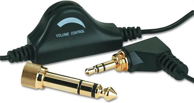 Lightweight headphones deliver crisp, high-quality audio to let you hear sounds the way it was meant to be heard. Volume control is conveniently located in a comfortable position for quick sound adjustments. Foam ear cushions provide the perfect amount of comfort for extended use. Cord with a stereo plug includes a gold-plated, 1/4 adapter that easily screws in for quick use. Headphones are designed for use with multimedia computers.