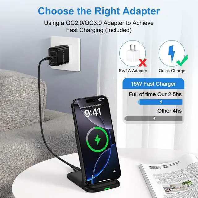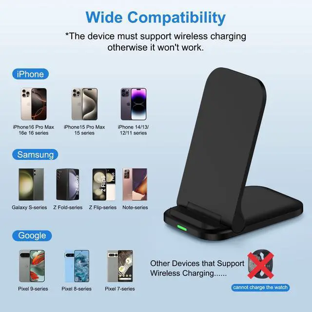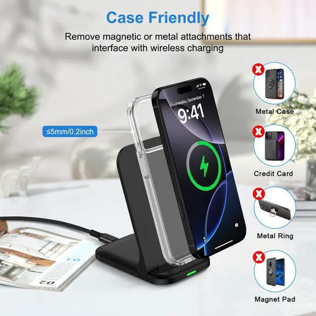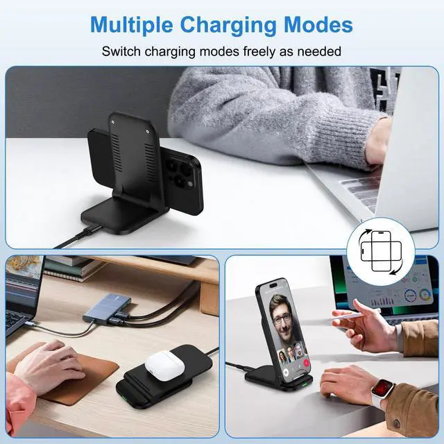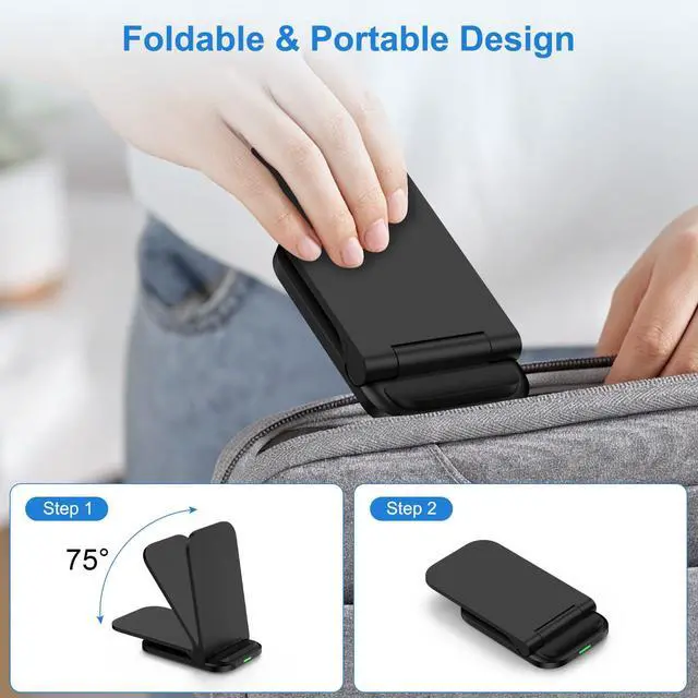 Foldable wireless charger is ideal for watching videos, video calls, work meetings, and checking notifications.