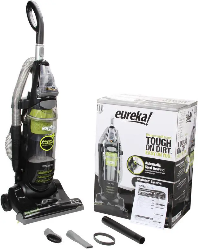 Ergonomic Cleaning - The Eureka WhirlWind Rewind bagless upright is designed to make powerful cleaning easy on you. An automatic cord rewind lets you rewind 25 feet of cord effortlessly with the push of a button for quick and easy storage. Reduce strain with the comfort-grip looped handle that adjusts to each users height.