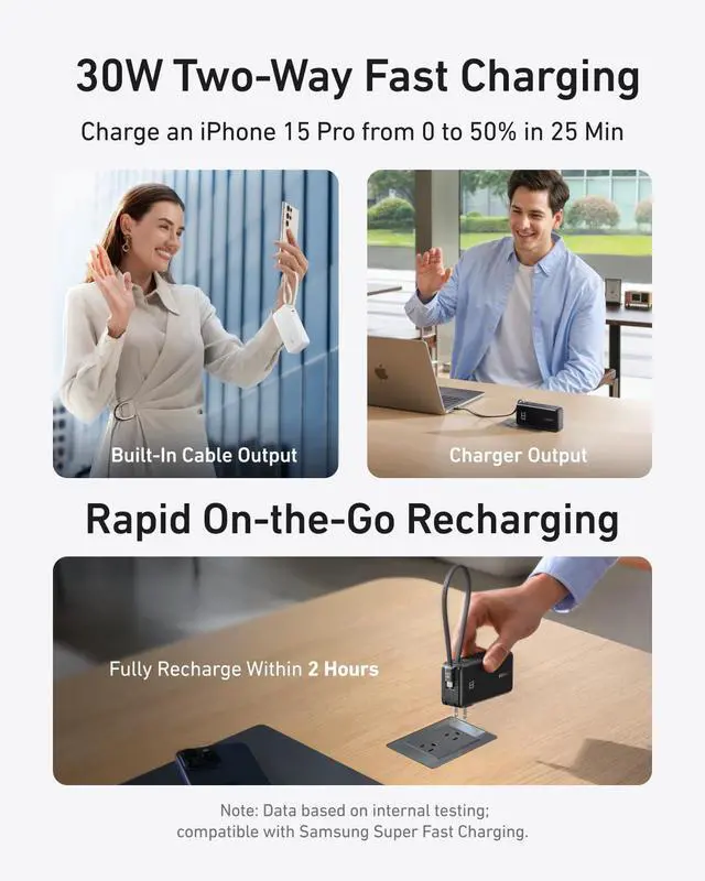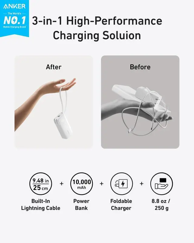 | 3-in-1 Charger + Built-In | Built-In C Cable *2 | Built-In Retractable C Cable | Built-In C Cable | 2-in-1 Power Bank and Charger | GaNPrime PowerCore 65W | Built-In C Cable |