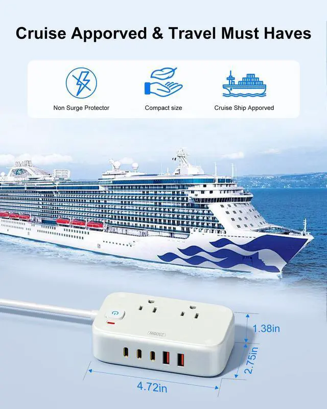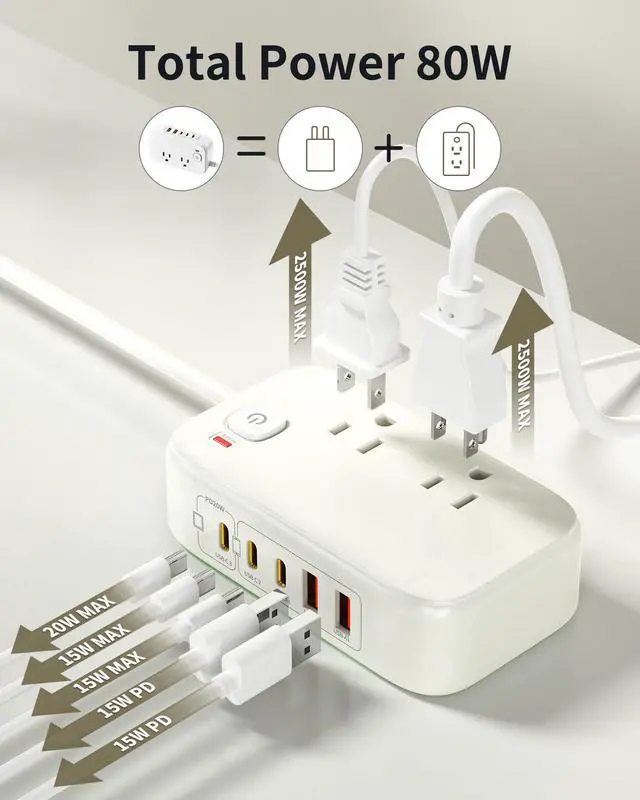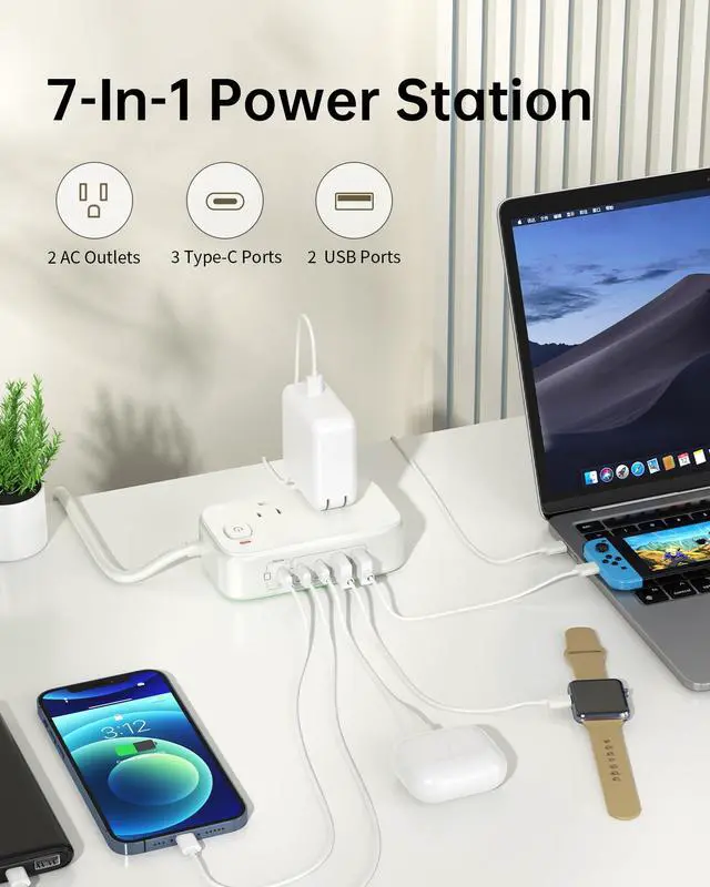 With 5ft extension cord, this multi-ports USB C power strip will support the common power requirements in the home and office.