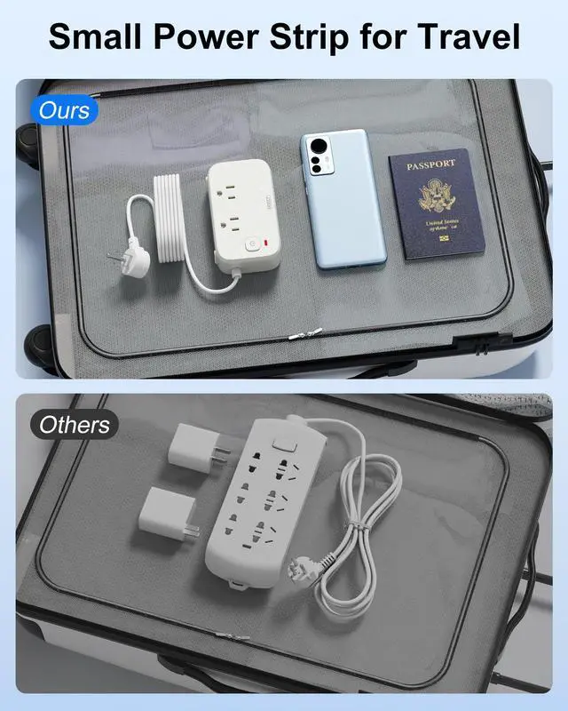 With a 45° right angled flat plug power strips that fits easily behind your bed, sofa, or other furniture, doesn’t block the bottom receptacle of your duplex wall outlet.