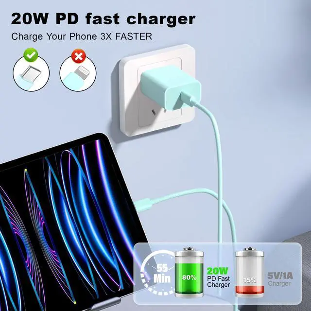 Type C Fast Charger:You can charge your Phone 15 and 16 series with this charger kit which includes 2 pack USB C power adapters and 2 pack USB C cables. The USB C charger supports 20W Power Delivery charging, meaning you can charge your Phone 15 and 16 to 50% in just 30mins--3x faster than a 5W charger.
