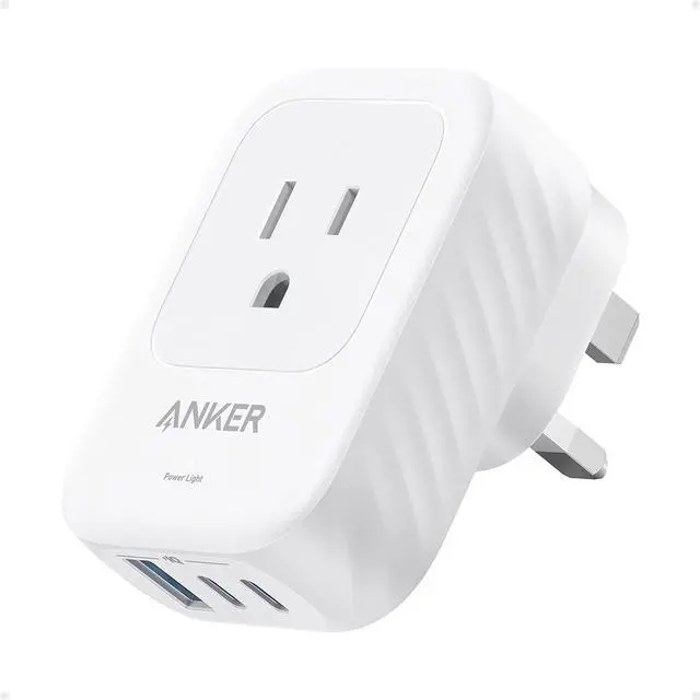 The UK Travel Charger: Travel with ease with Type A or B inputs and G output, ideal for multiple countries like the UK, Singapore, and Dubai. Equipped with 2 AC, 2 USB-C, and 1 USB-A port, enjoy fast, convenient charging for multiple devices.