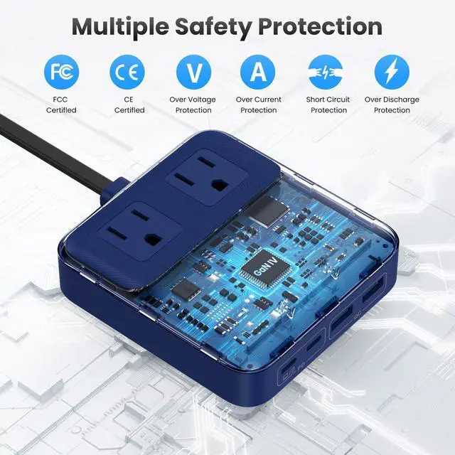 - The ultra-slim power strip features a flat AC plug and a soft, flat extension cord, maximizing space efficiency in your home or workspace.