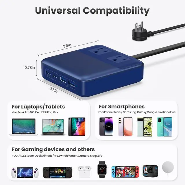 This USB C Charging Station also have 2 AC outlets, it Compatible with most chargers on the market.