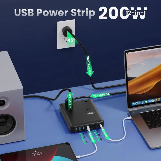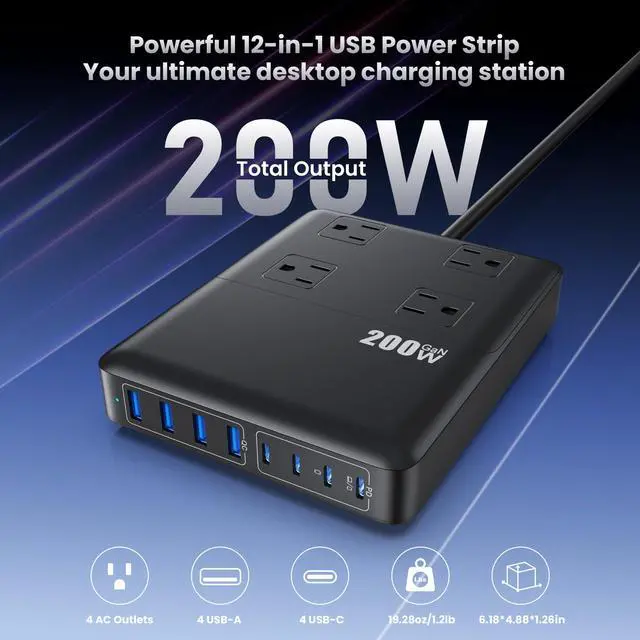 - Our 200W 12-in-1 USB C Power Strip replaces messy chargers and power strips with one all-in-one charging solution for your home, office, dorm, and family use..