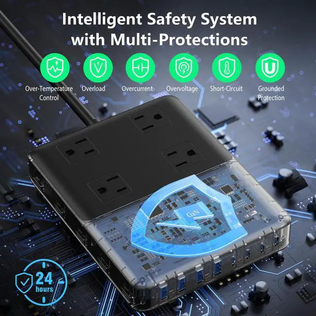 With 4 AC outlets, 4 USB-C, and 4 USB-A ports, power everything from your high-performance laptop to your desk lamp, smartwatch, and earbuds—no more fighting over wall sockets.