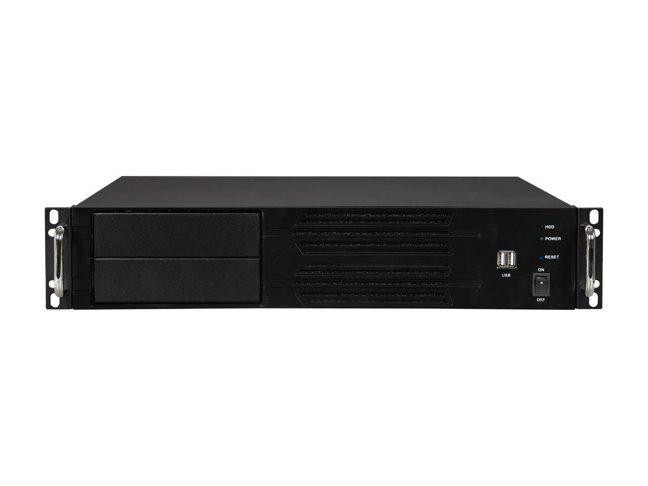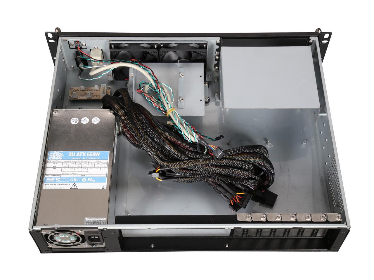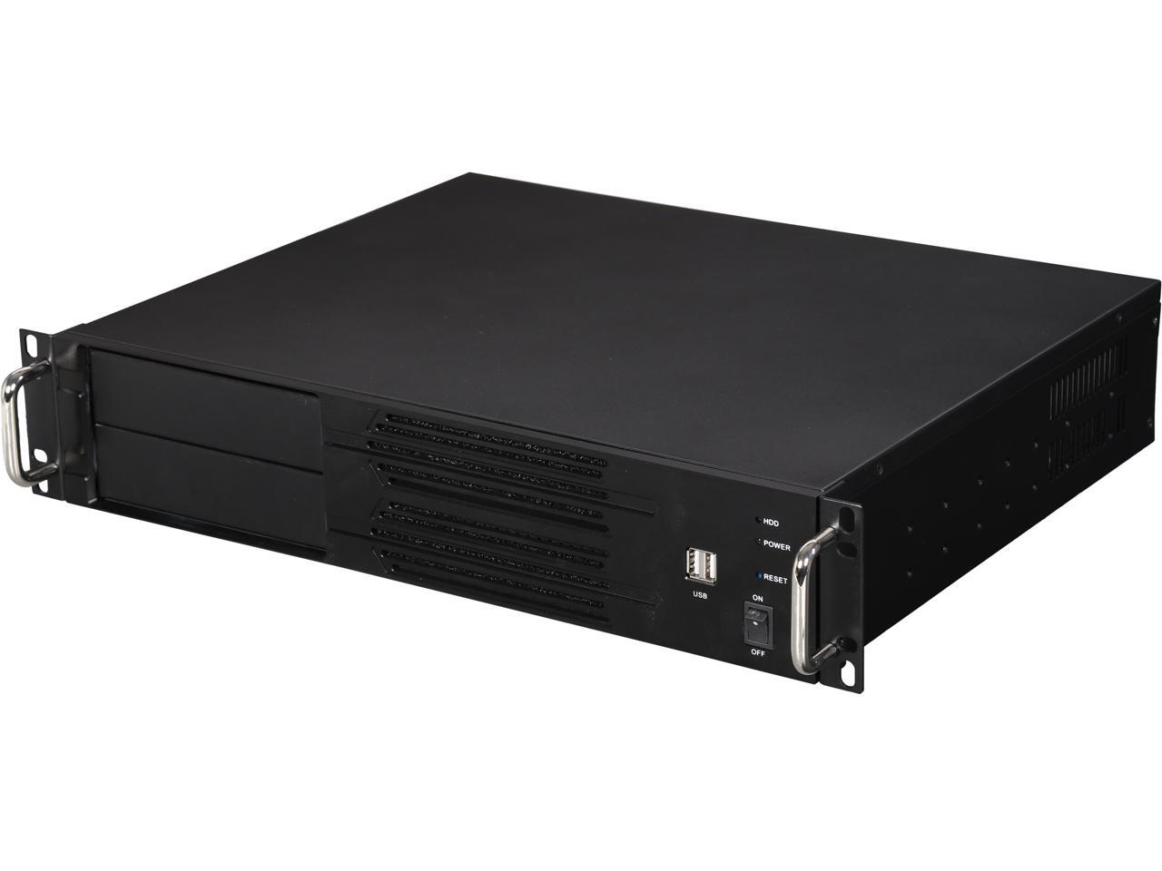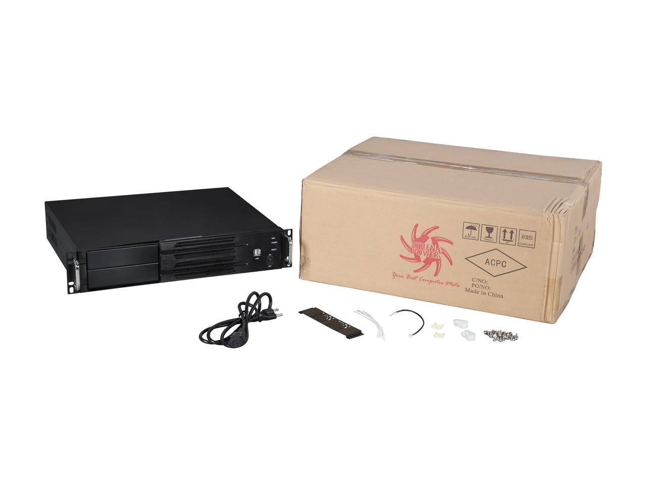 Athena Power RM-2U200HR65U2 Black Brushed Aluminum Front Bezel / 1.2mm SECC 2U Rackmount Server Case 2U 650W IPC Power supply (External) 5.25" up to 2 (Only 1 x 5.25" external bay with a m-ATX or ATX motherboard) External 5.25" Drive Bays - OEM