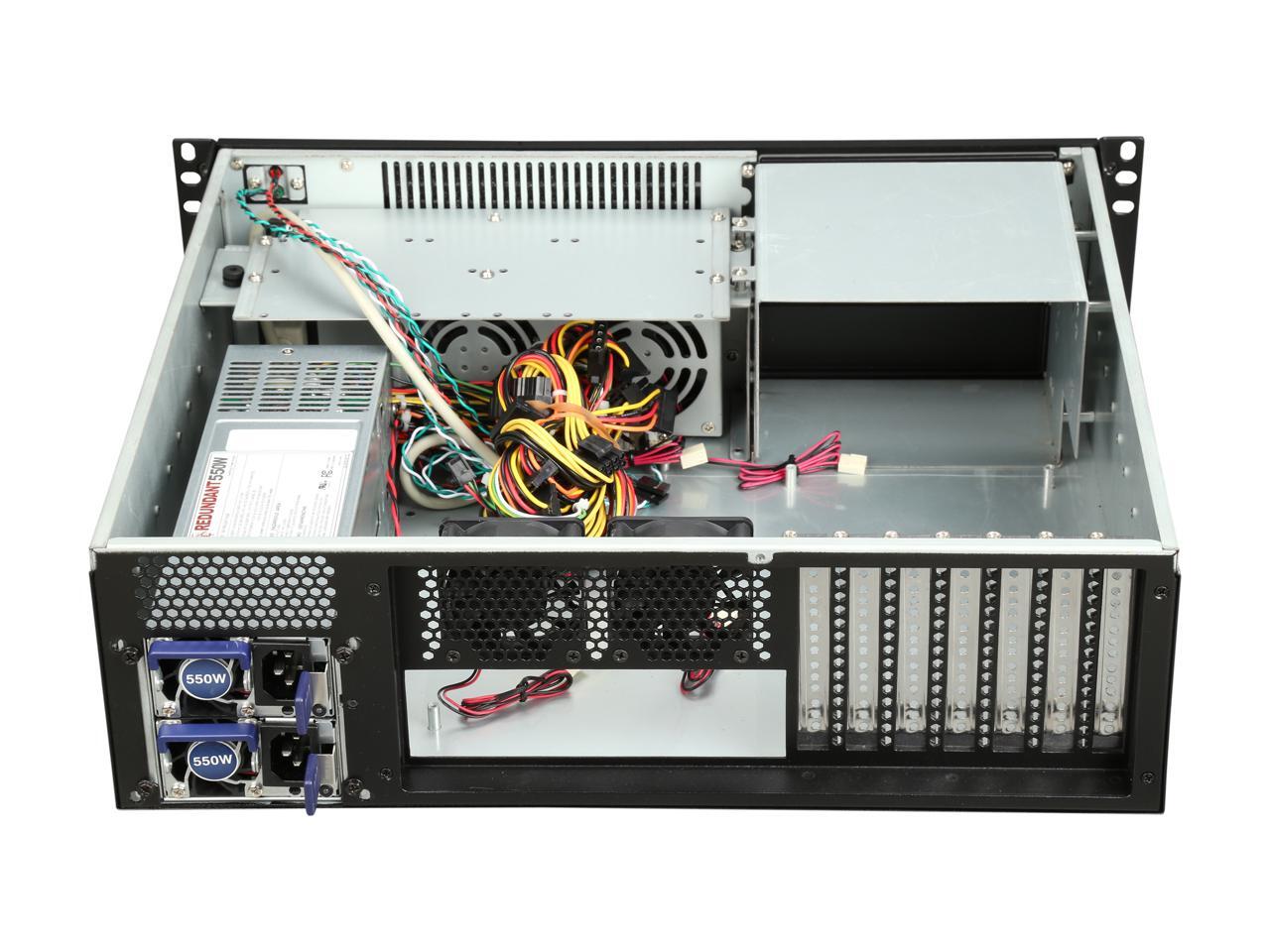 Athena Power RM-3U300PRR55U2 Black Brushed Aluminum Front Bezel / 1.2mm SECC 3U Rackmount Server Case 2U 550W Micro Redundant power supply 3 External 5.25" Drive Bays - OEM