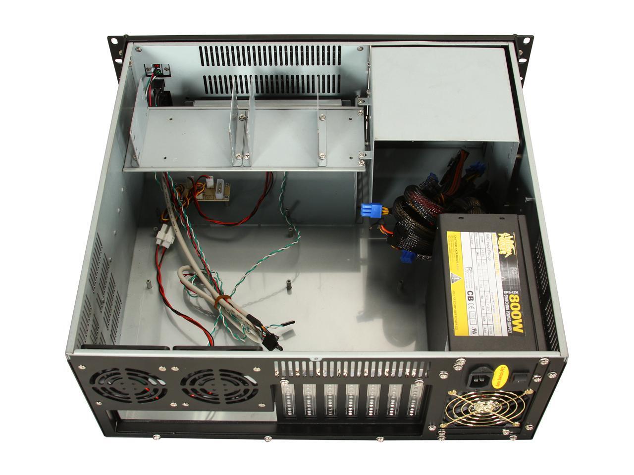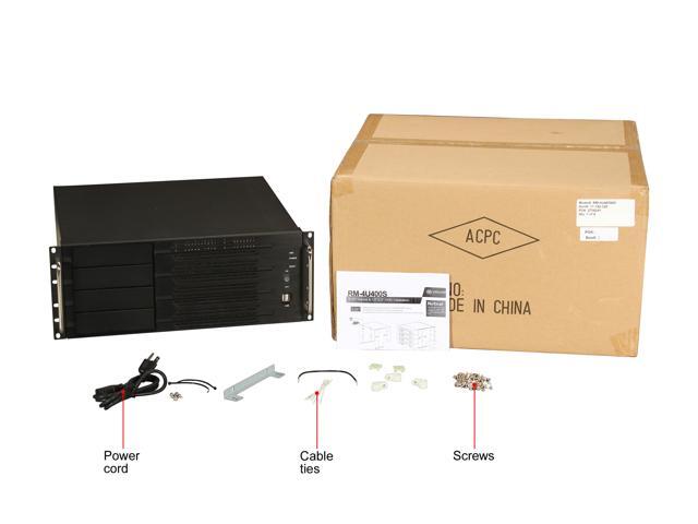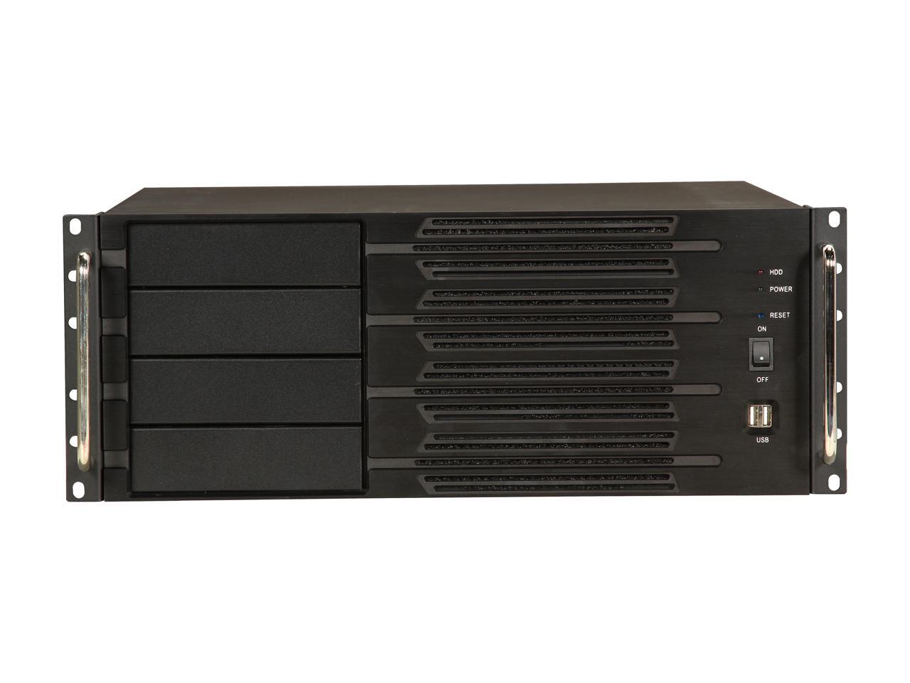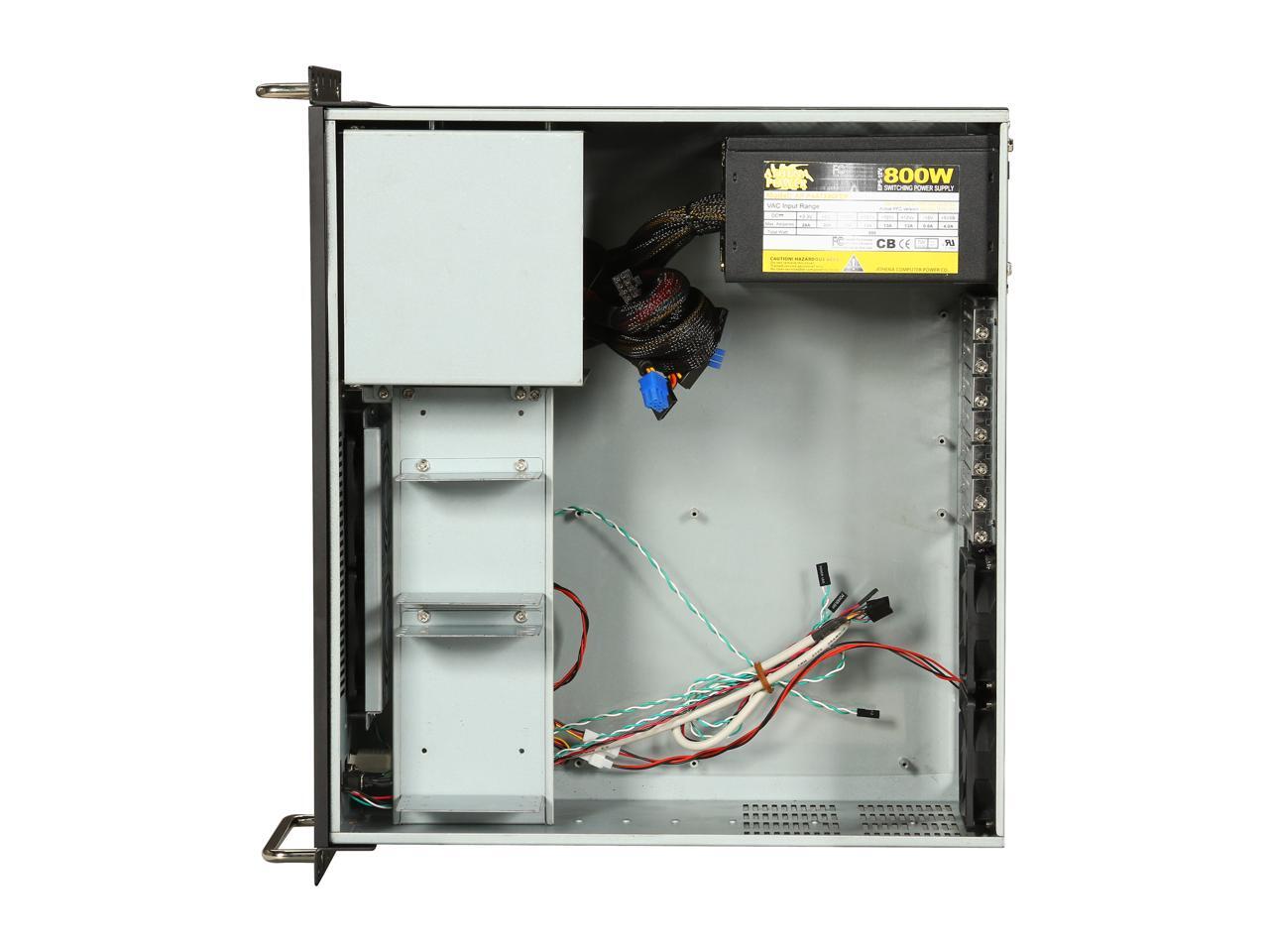 Athena Power RM-4U400S80 Black Aluminum Front Panel and 1.2mm Steel 4U Rackmount Server Case 800W ULTIMATE PS2 4 External 5.25" Drive Bays