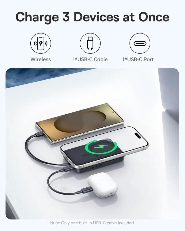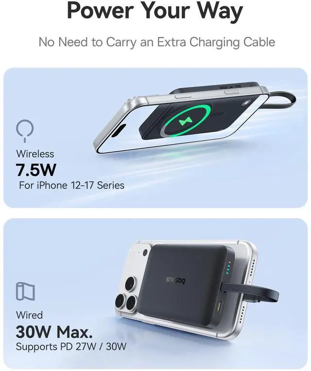 No More Cables! Baseus 10K mAh MagSafe Portable Charger with Built-in C-Cable.