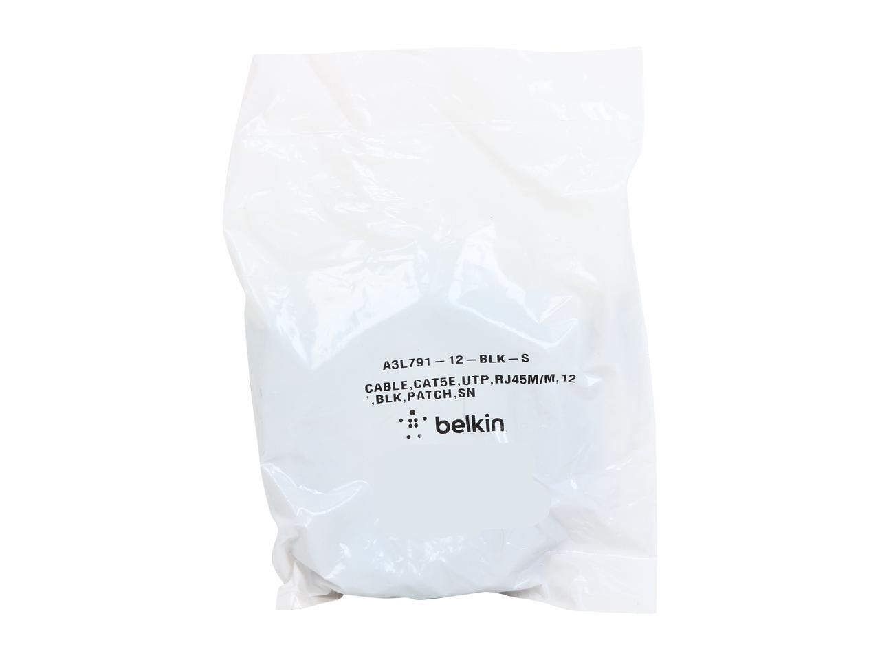Belkin A3L791-12-BLK-S 12 ft. Cat 5E Black RJ45M/RJ45M Snagless Patch Cable