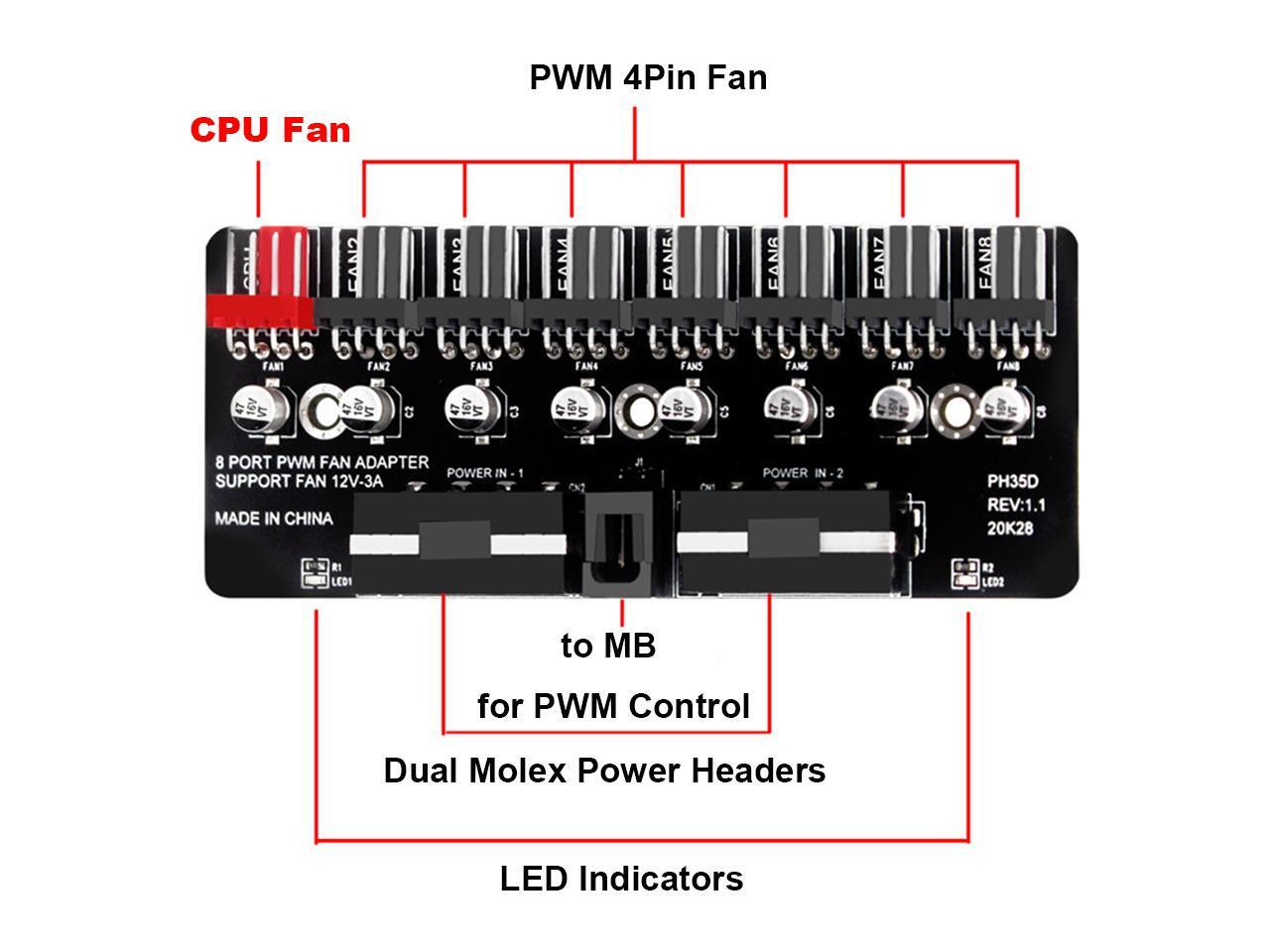 - PWM function for 4pin PWM fans,spin at the same speed using PWM controller