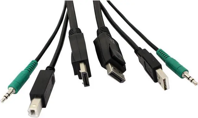 Black Box Secure DisplayPort KVM Cable - USB A-B 3.5mm Audio 6-ft. - 6 ft DisplayPort/Mini-phone/USB Audio/Video/Data Transfer Cable for Audio/Video Device KVM Switch - First End: 1 x DisplayPort Male Video First End: 1 x USB Type A Male First End: 1 x 3.5mm Male Stereo Audio - Second End: 1 x DisplayPort Male Video Second End: 1 x USB Type B Male Second End: 1 x 3..