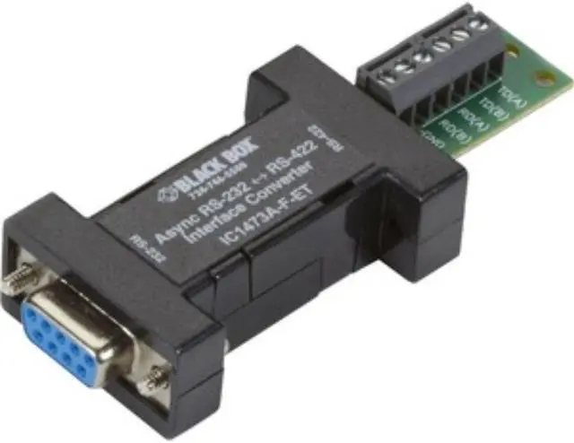 | Specifications | For DB9 equipment, if the peripheral operates on the RS-422 signal, use only one DB9 converter. But if the transmitting and receiving equipment only operates on RS-232, use two converters. All provide 115.2-kbps speed for distances up to 4000 feet (1219.2 m). |