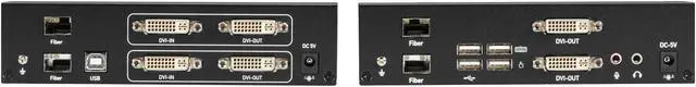 | Package Contents | (1) Dual-Head DVI KVM Fiber Extender Transmitter (1) Dual-Head DVI KVM Fiber Extender Receiver (2) Wallmount Power Supplies 5V, 2 A W/ US, EU, AU, and UK Power Clips (2) DVI Cables, M/M (6-ft./1.8-m), (1) USB Type A To B Cable, M/M (6-ft./1.8-m) (1) 3.5-mm Dual Audio/Mic Cable, M/M (6-ft./1.8-m) |