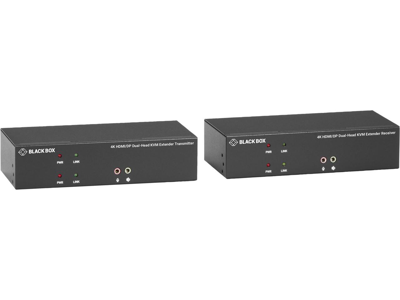 Black Box KVX Series KVXLCHDPF-200 KVM Extender over Fiber - 4K, Dual-Head, HDMI/DisplayPort, USB 2.0, Serial, Audio, Local Video
