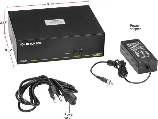 Contents: NIAP 3.0 Secure 2-Port Single-Head DisplayPort KVM Switch 1 x 12-VDC Power Supply with US Power Cord Quick Start