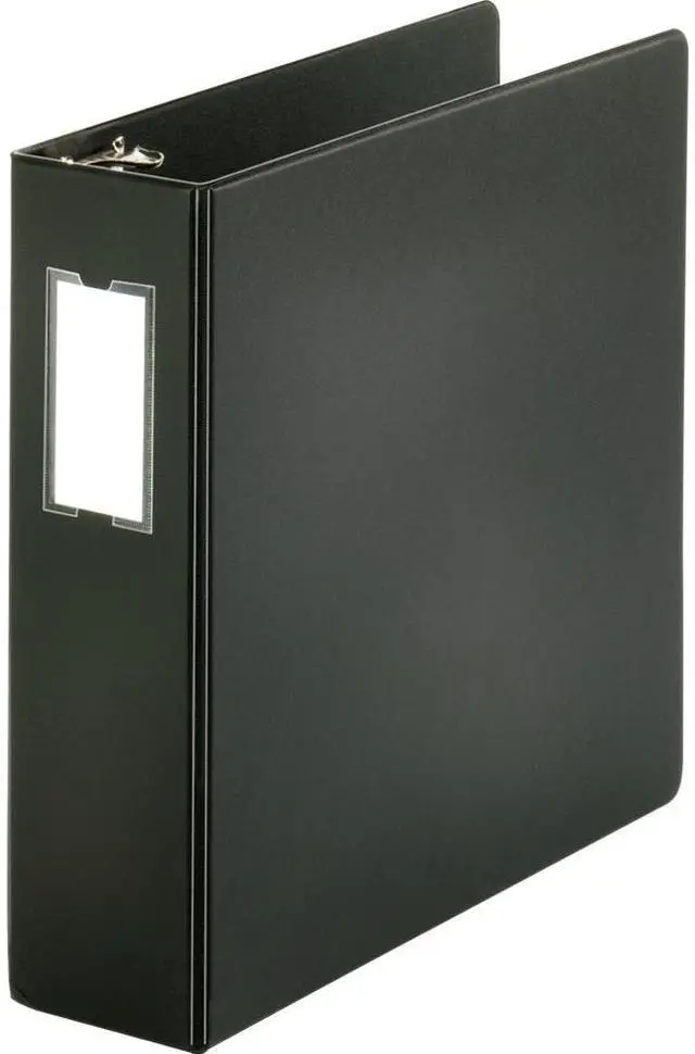 Basic round-ring binder with label holder features two triggers on the ring mechanism that provide easy access to your documents. Back-mounted metal rings allow pages to lie flat. Clear pockets on the inside covers offer extra document storage with a 30-sheet capacity for each pocket. Design also features a label holder, Polypropylene construction, sturdy chipboard core and exposed rivets.