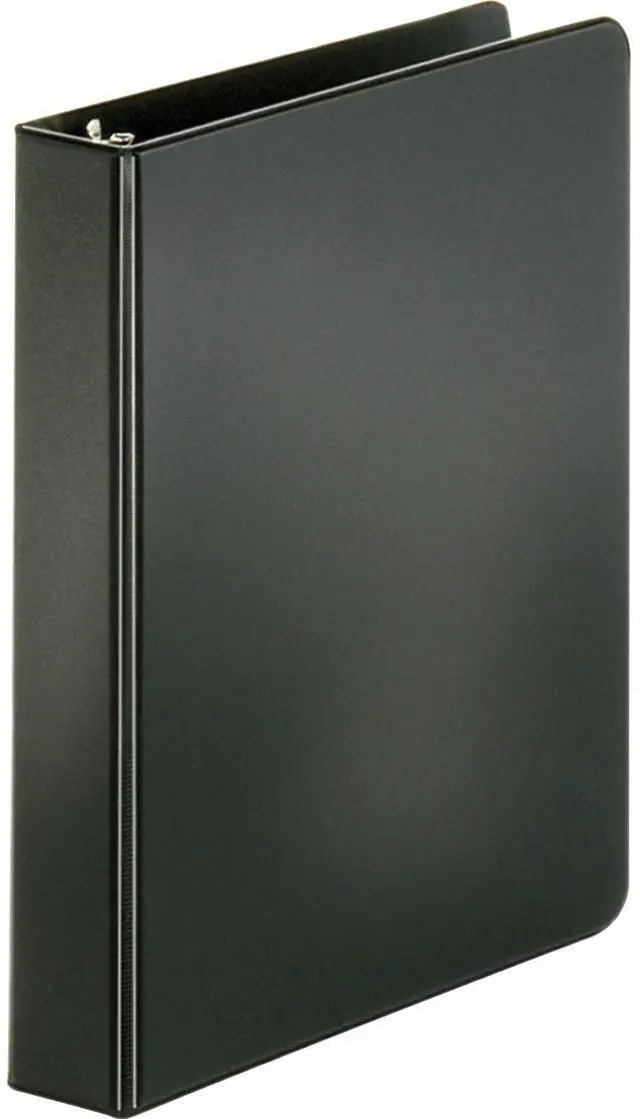 Basic round-ring binder features two triggers on the ring mechanism that provide easy access to your documents. Back-mounted metal rings allow pages to lie flat. Clear pockets inside front and back covers offer extra document storage with a 30-sheet capacity for each pocket. Design also features a sturdy chipboard core and exposed rivets. Three-ring binder is made of polypropylene.