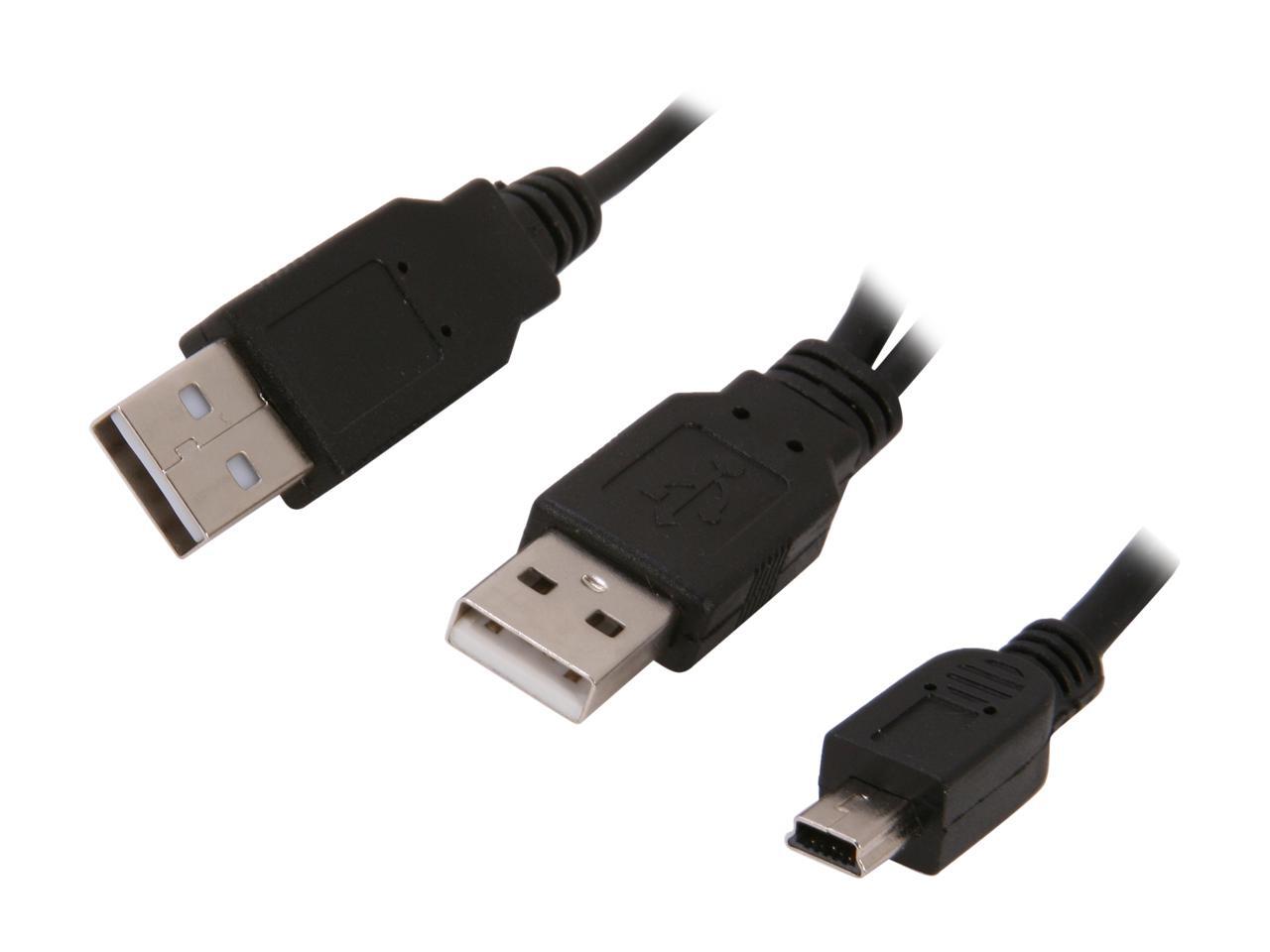 BYTECC USB2-HD201 Black USB 2.0 Y cable, A male x 2 to Mini B male x1, for 2.5" Enclosure or USB2.0 Hub