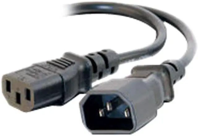 Plug in our power cord extension cord to make your work environment more flexible and efficient. The female connector plugs directly into device, and the male connector plugs into an existing cable. This heavy-duty 16 AWG cord features a fully molded design for maximum durability and long life. Compatible for monitors, scanners, printers, and other devices that use a 3-pin shroud power connector.