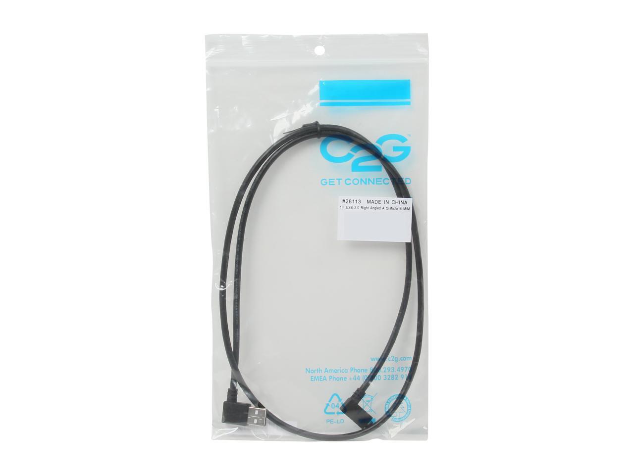 C2G 28113 USB Cable - USB 2.0 Right Angle A Male to Micro-USB B Right Angle Male Cable, Black (3.3 Feet, 1 Meter)
