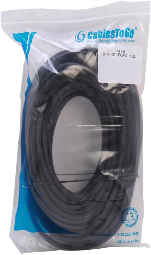 OverviewMake the right choice to connect any video source with composite video to your VCR, DVD player, TV or other video equipment. This cost-conscious cable is made with higher quality than most standard video cables to deliver a crisp, clear picture for less. Gold terminals ensure long-lasting, corrosion-free connections; fully molded connectors provide excellent strain relief. The coax conductor's 75 Ohm copper braid shield helps reduce unwanted noise and distortion.Connector 1: (1) RCA Composite Video MaleConnector 2: (1) RCA Composite Video MaleProduct SpecificationsColor:BlackUPC:757120404569Vendor:Cables To GoWeight:0.850 LBLength:50.00 Foot
