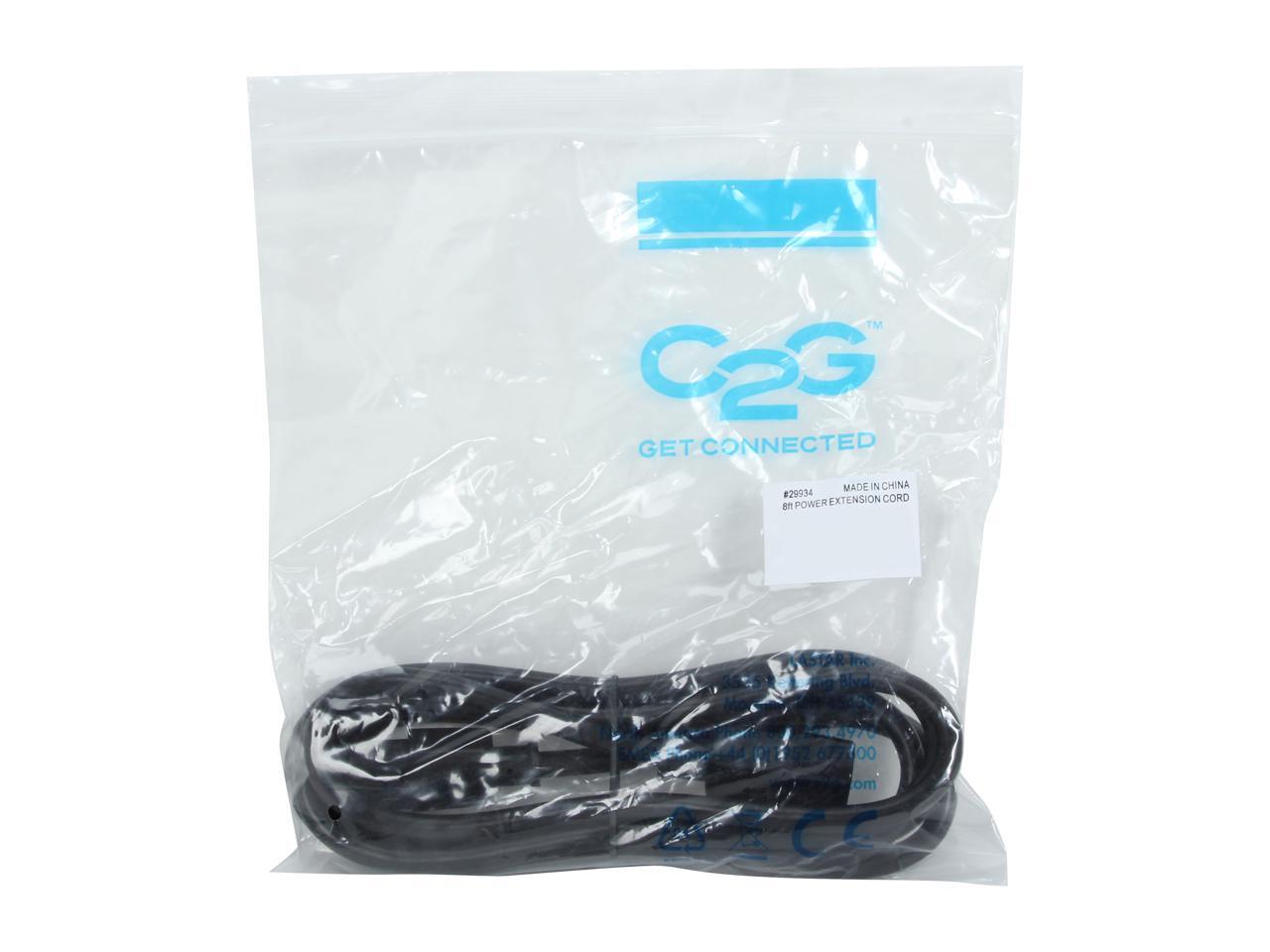 C2G 29934 16 AWG 250 Volt Computer Power Extension Cord - C14 to C13, TAA Compliant, Black (8 Feet, 2.43 Meters)