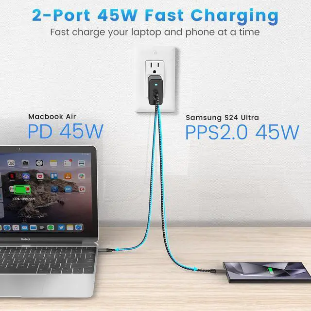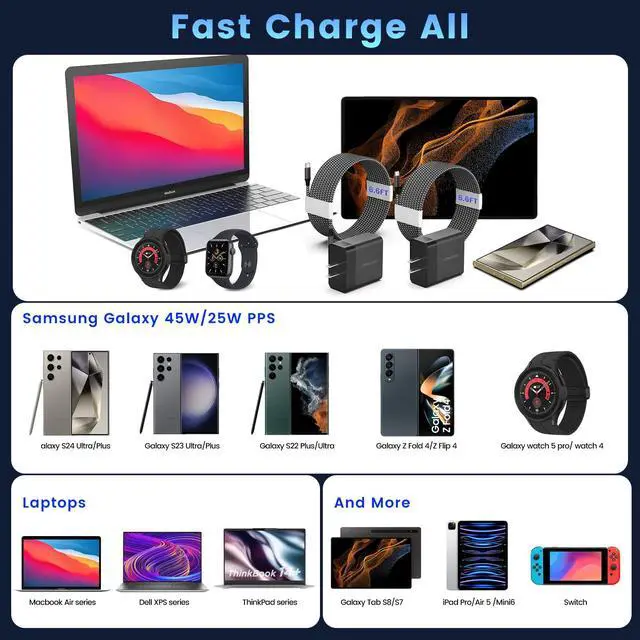 This 45w super fast charger type c kit is compatible for the newest Samsung Galaxy S24 Ultra and other Samsung devices which support Samsung "Super Fast Charging 2.0".
