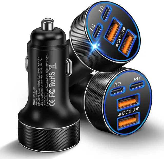 • All-in-One Car Charger: With this powerful 90W charger, you can charge up to 4 devices simultaneously in the car. Dual 45W USB-C PD port+18W USB-A port automatic detection device which provides the fastest charging speed for each one. Keep your phone, laptop, and more powered up on every drive.