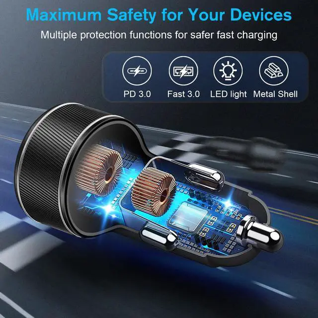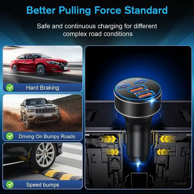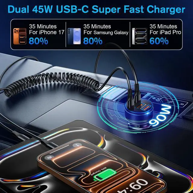 All-in-One Car Charger: With this powerful 90W charger, you can charge up to 4 devices simultaneously in the car