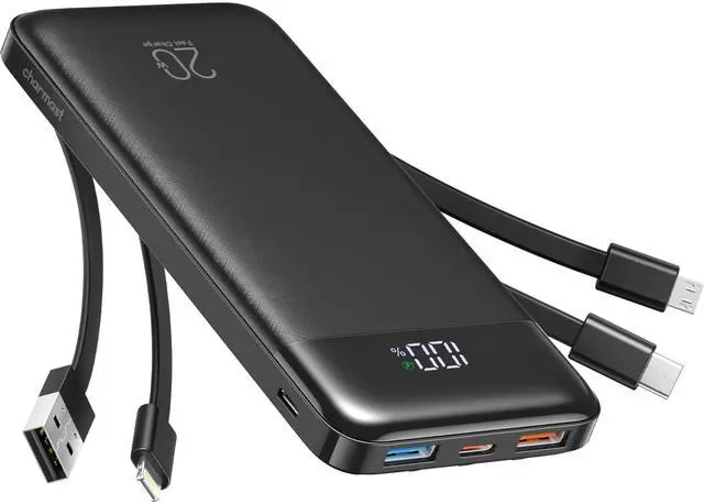 Charmast 20000mAh Portable Charger with Built in Cables, 22.5W Travel Power Bank Fast Charging, USB C Cell Phone Battery Pack for iPhone 16/15/14/13/12/11 Series, iPad, Samsung, Android, Tablet