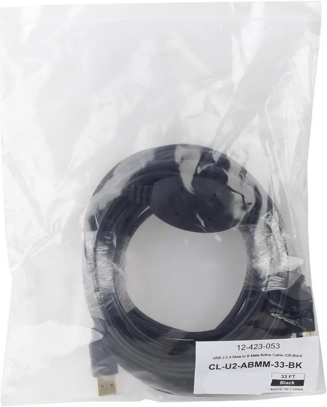 The Coboc CL-U2-ABMM-33-BK is a high-performance USB 2.0 A Male to B Male repeater/booster cable. It enables you to easily connect various USB-enabled peripheral (printers/ modems/SSD enclosures etc.) to a USB2.0 host. A built-in active circuitry ensures signal quality and integrity over its entire 33-feet length. It delivers fast data transfer speed of up to 480 Mbps, while its high-quality construction – gold-plated connectors, foil and braid shielding, and twisted pair construction, ensures a clean and interference-free signal transfer. Up to 33ft cable length provides added flexibility. Plus, it’s bus-powered; no external power source is required.